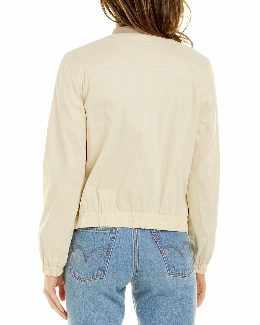 - Baharah Linen-Blend Bomber Jacket in light linen with elasticized hem and cuffs and two front pockets