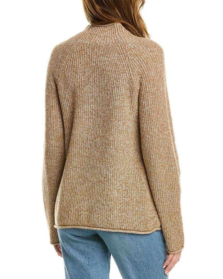 - Cozy Turtleneck Cashmere Sweater in haystack and ivory with ribbed design, raglan sleeves, and rolled trim