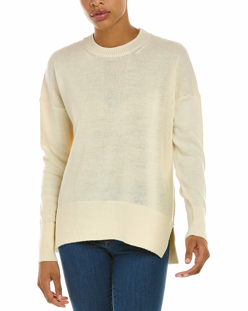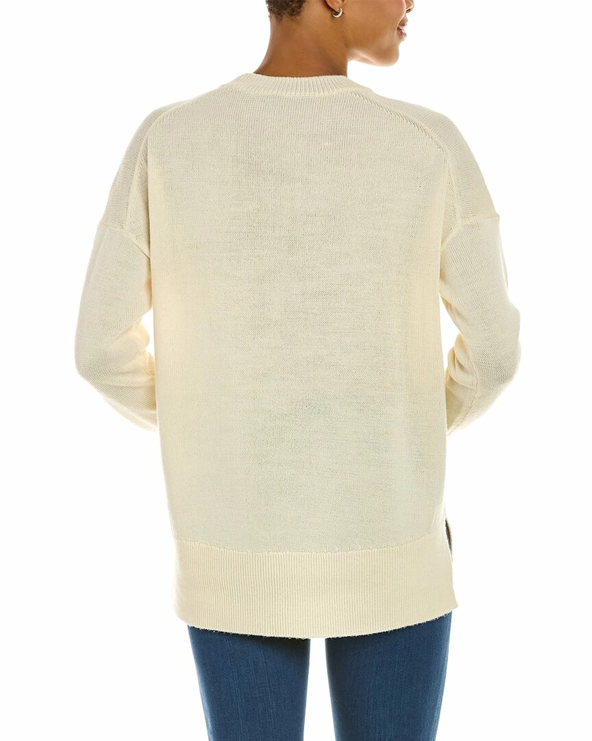 - Karenia Sweater in ivory with crewneck, dropped-shoulder sleeves and ribbed trim
